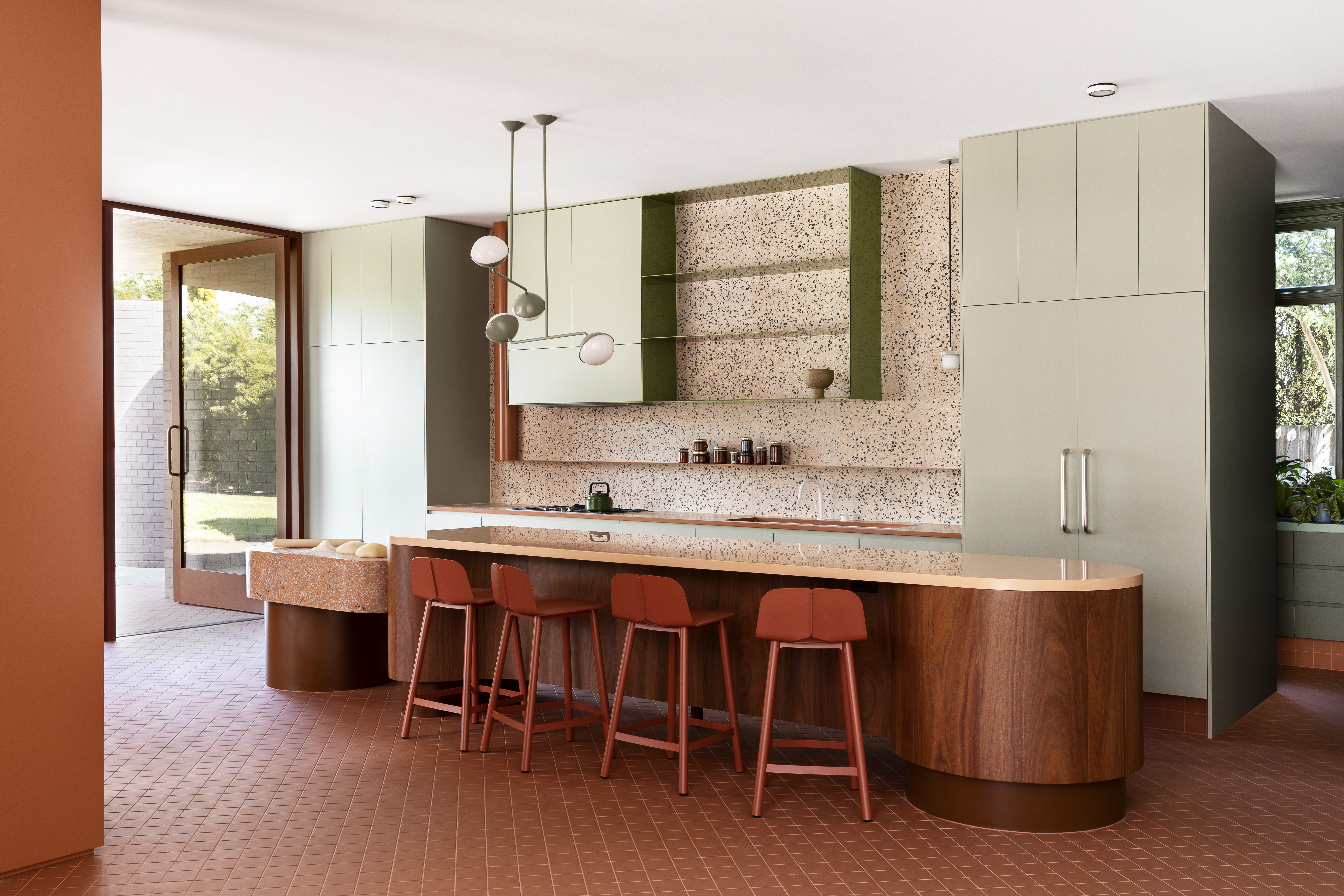 “The kitchen is a stand-out. The glorious combinations of rusts, greens, and pinks — the reflected textures felt grounded and almost biophilic. Certain elements allow the eye to dance around the space and others feel safe and solid,” says Monique.