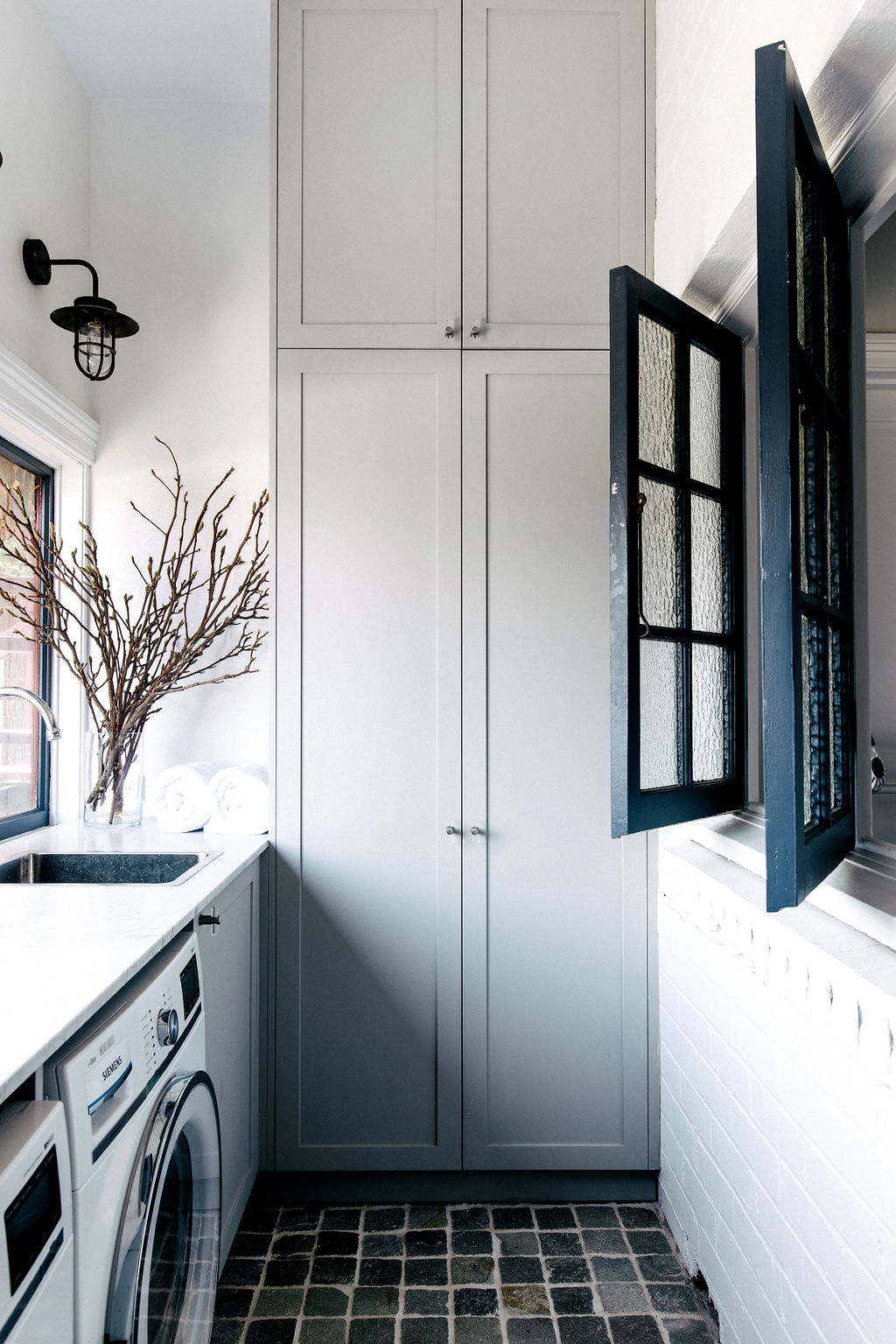 Having lived for many years in Manhattan,Jillian knows how to make every millimetre count. By reducing the size of theguest bedroom, it gave Jillian enough room to create a large storage closetaccessible from the main hallway. She installed shelving from the ground up,using every bit of the 3.3-metre height while the laundry got a full-heightcabinet to hold cleaning supplies and home utility items behind closed doors.